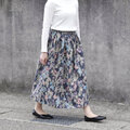 水彩画のような柔らかなタッチで、上品な草花が描かれているボタニカル柄のスカート。