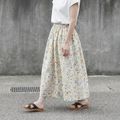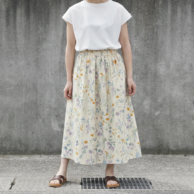 ★新作 上質・綿麻生地 水彩画風 ボタニカル・ガーデン ギャザースカート(ナチュラル)リネン 麻 ロング マキシ ポケット