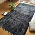 111-113×208 ブラックオーバーダイ こげ茶 トルコヴィンテージラグ