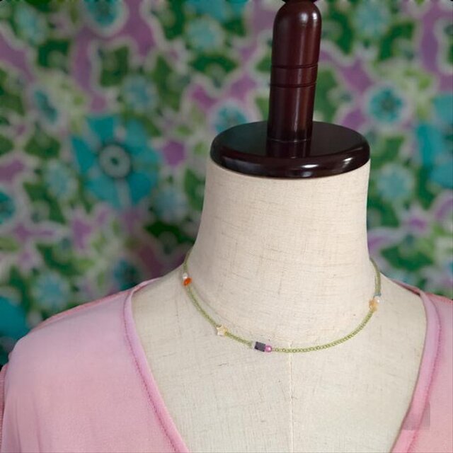 ペリドットと星のカラフルネックレス ショートネックレス チョーカー