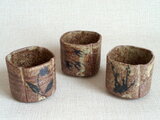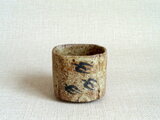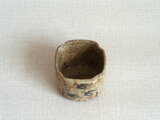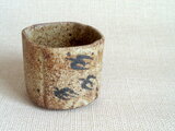 この湯のみは、粗目の信楽の土を用い成形時の土が柔らかいうちに四方に形作り、絵付けをして焼成を重ねて仕上げています。描く時に使用した鉄釉は、原材料を近くの田んぼから採取して自陶房で調合したものです。すみれとつばめを一面ずつに描いています。素朴で温かみのある絵柄が映える味わい深い作品です。刺し身や酢の物などを入れる向付としてもお使いいただけます。