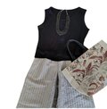 リネンの一番自然な生成り色にブラックのピンストライプです。