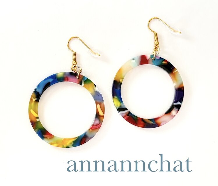 フランスから取り寄せた カラフルな輪 で ピアスを作りました。