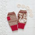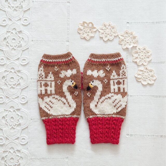アルパカ100%、ふわふわで柔らかい白鳥の柄のミトンができました。