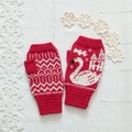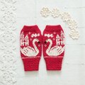 ふわふわで柔らかい、白鳥柄のミトンができました。