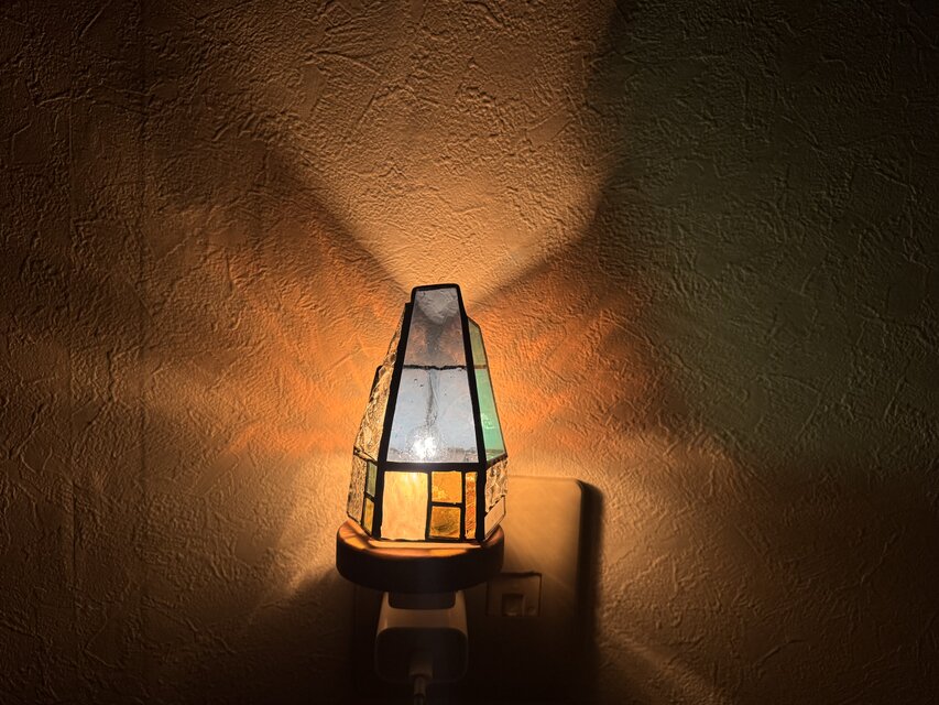 ステンドグラスのスタジオで作られたステンドグラスの灯台型フットライト