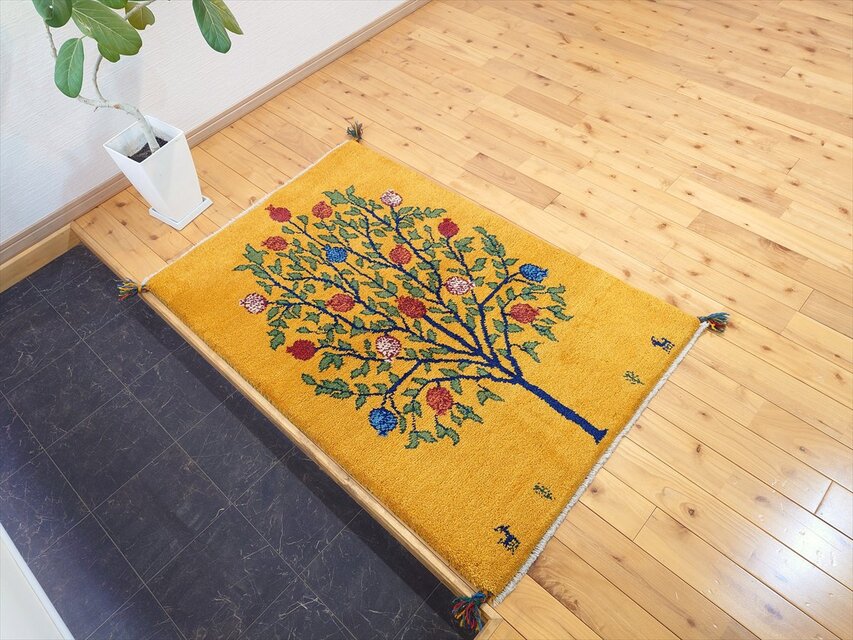 商品名: ペルシャ ギャッベ 黄金色 ザクロの木 ヤギ 生命の木 RJ14878