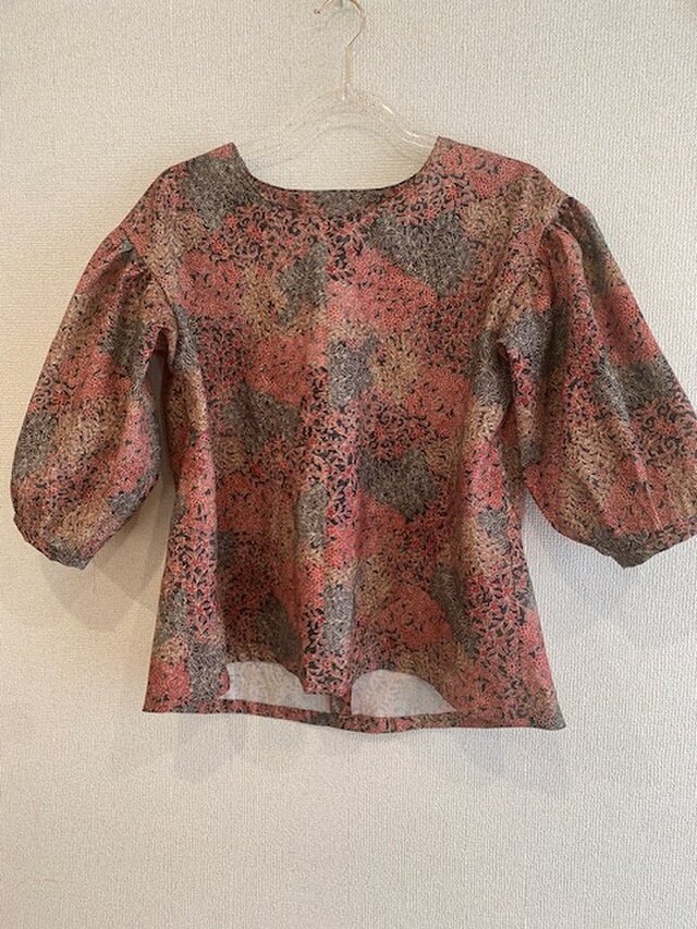 袖山と袖口にギャザーをよせてふんわりさせた袖がポイントです。