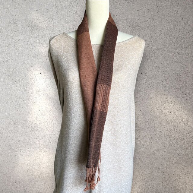 本日無事作品を受け取りました。色合いがいいですね。デザインも素敵で巻き方次第でいろんな表情が楽しめそうです。ありがとうございました(*^^*)