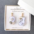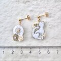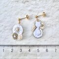 〈耳元を彩るあなたの“大好き”〉猫とお花 ピアス/イヤリング サージカルステンレス 金属アレルギー対応 ホワイト 白