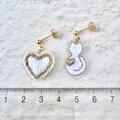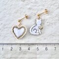 〈猫好きさんの“好き”を形にしたピアス/イヤリング〉猫とハート サージカルステンレス 金属アレルギー対応 ホワイト 白