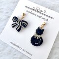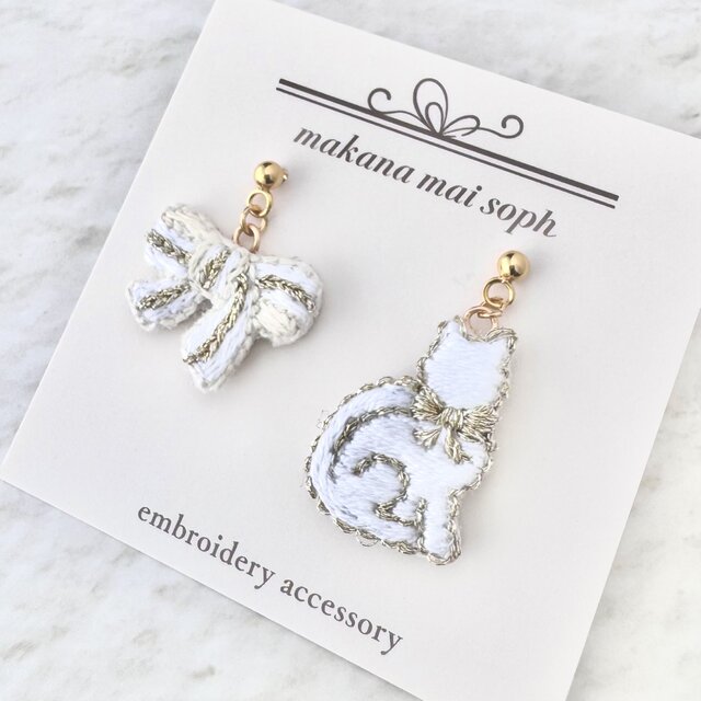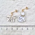 ハンドメイド 耳飾り 動物 りぼん 甘さ控えめ 大人可愛い 上品 カジュアル 手作り 白 黒 ブラック ゴールド 金 アシメ アシンメトリー 軽い 揺れる レディース 大人の女性 大人女子 20代 30代 40代 50代 お散歩 お出かけ 普段使い デイリー プレゼント ギフト お呼ばれ パーティー 記念日 うちの子記念日 誕生日 母の日 ハロウィン クリスマス