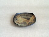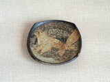 この器は、信楽の土を使いろくろ成形した四方皿に、蝶を丁寧に手描きし金で縁どりをして焼成を重ねています。金の縁取りが蝶にさりげない華やかさを添えています。金を使っての絵付けは技術的に難しく、作業時の温度・湿度管理に気を遣い仕上げています。