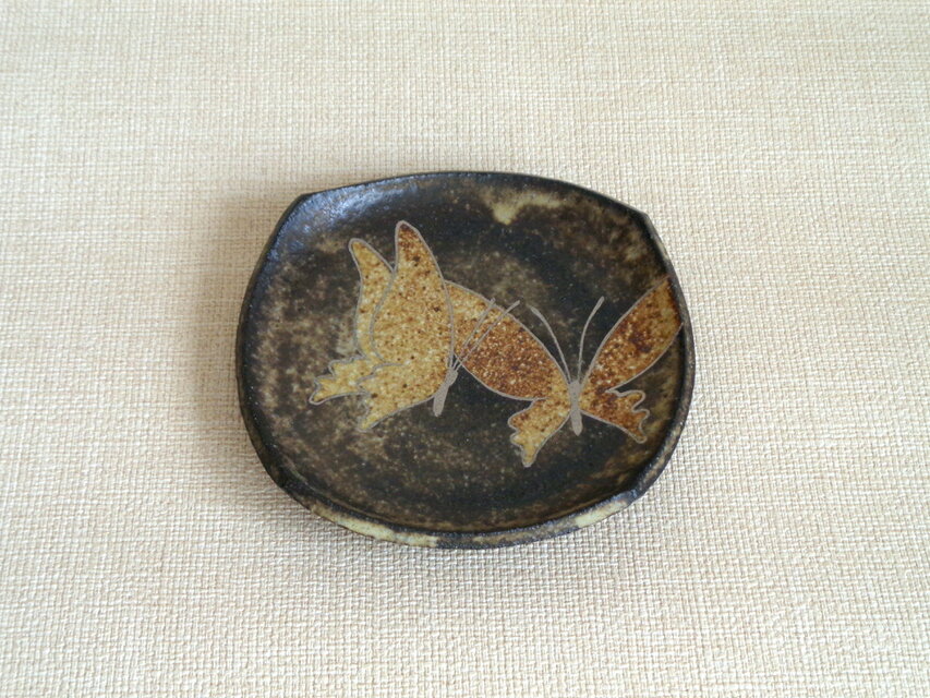 蝶をのびやかに描いた四方皿です。
