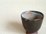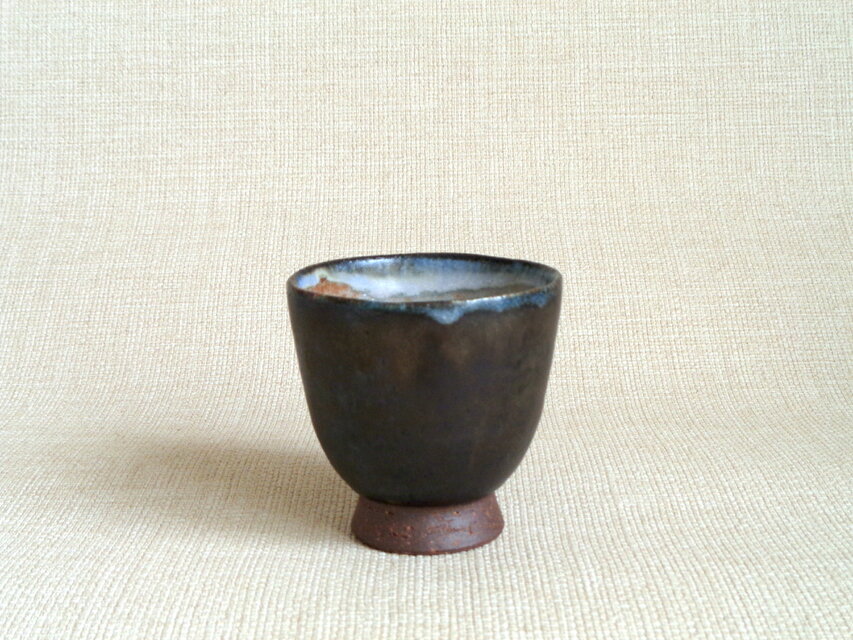 この作品は、信楽の土を用いてろくろで成形した湯のみに、外側は独自に調合した黒釉を、内側にはやわらかな表情の志野釉をたっぷりとかけて仕上げています。釉薬の流れが一つひとつ異なり、それぞれに味わい深い表情が生まれています。持ちやすく、口当たりも優しい湯のみです。飲み物の色が映え、いつもと違った雰囲気で味や香りを楽しんでいただけます。器ごと冷やして冷たい果物やデザートを盛り付けるのもおすすめです。