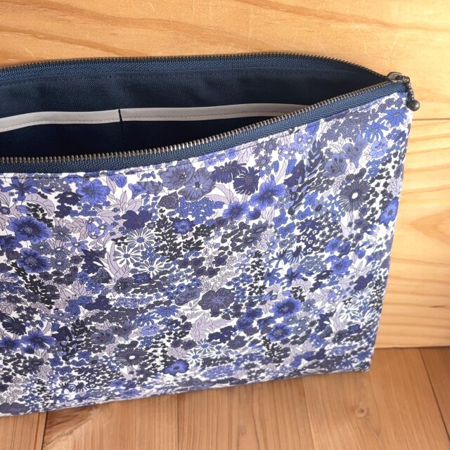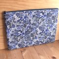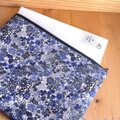 リバティ A4サイズ 大判ポーチ タブレットポーチ<Margaret Annie>(マーガレットアニー)ブルー