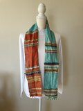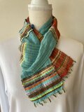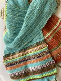 ブラッドオレンジ色とソーダ色のリネン糸をベースに織りました。