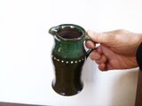 ●ハンドル(持ち手)をボディに接着します。接着には粘土をクリーム状に溶いたものを使用。