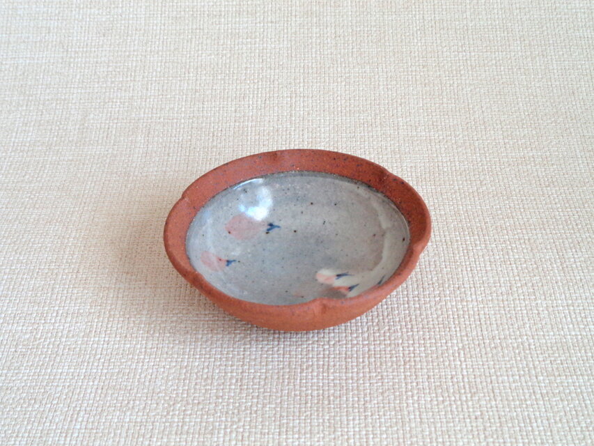 この器は信楽の土を用いろくろで成形しています。縁は緩やかな輪花に仕上げ、花びらを丁寧に手描きし焼成を重ねています。内側は落ち着いた色合いの釉薬でしっとりと、外側や縁には土味を残した、釉の艶と素朴な風合いが味わえる器です。