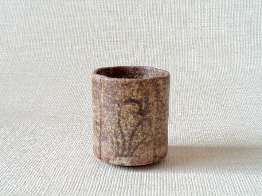 素朴で温かみのある鉄絵には、近くの田んぼから採取した原料を用い、自陶房で調合した鉄釉を使用しています。にじみやかすれを残した鉄絵が、湯のみに深みを添えています。