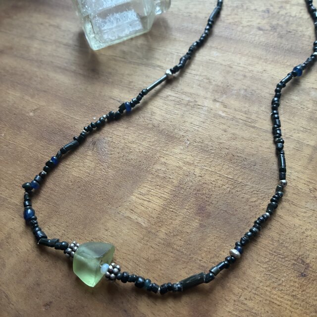 ⭐︎*古のAsiaのネックレス。@ローマングラスのカケラ+アジア渡のオールドビーズ+カレンシルバー