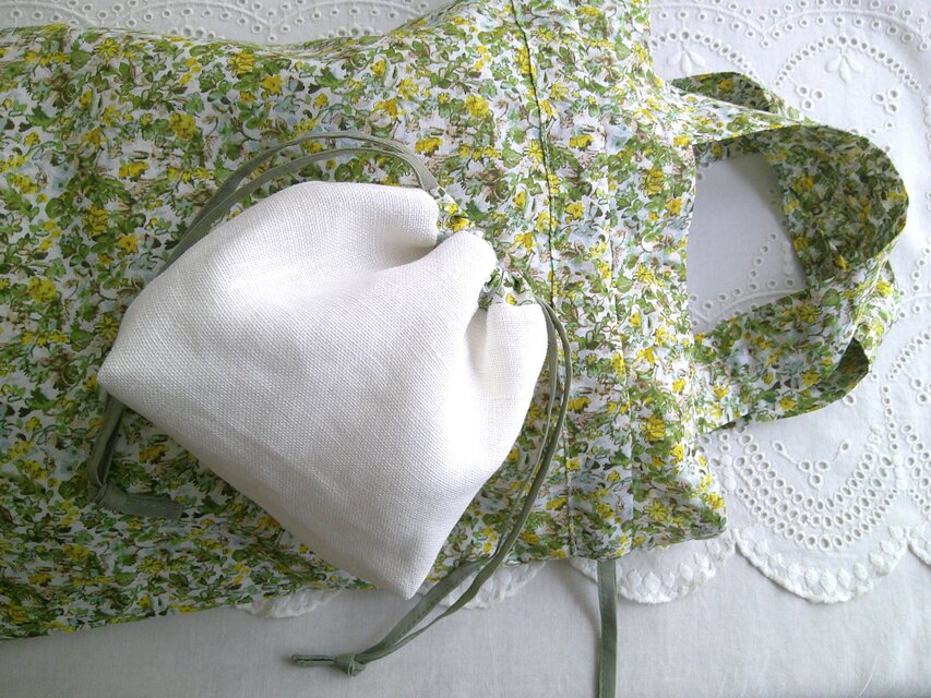 1枚仕立ての巾着バッグとリネンのポーチセットです。