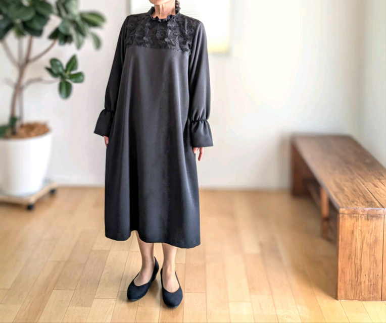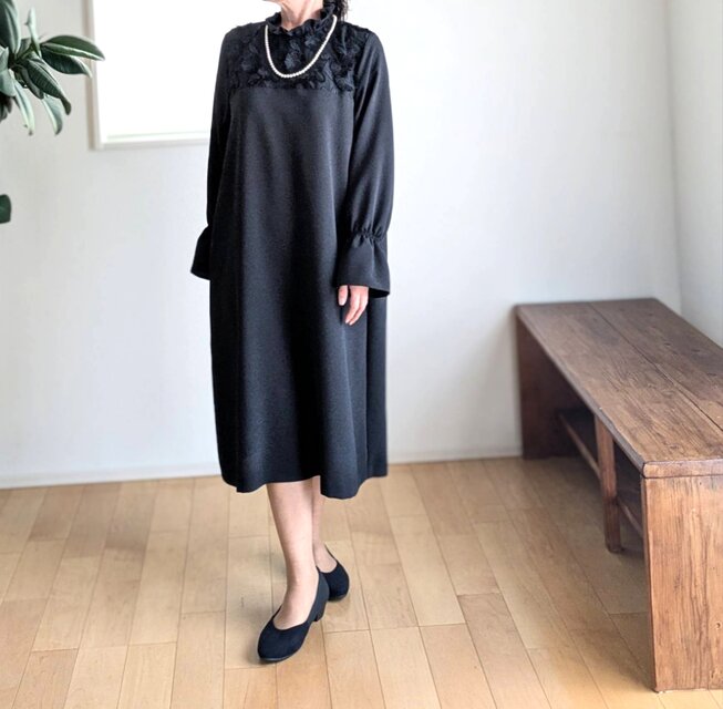 襟元はフリル仕立てで、上品な中にもやわらかい女性らしい印象です♪