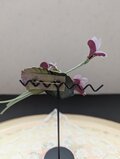 葉先に花色をにじませたモスグリーン色の葉っぱたち