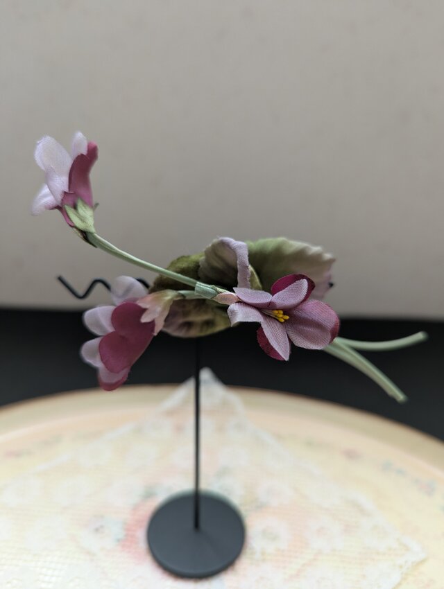 ふんわり可憐な花姿のすみれを3本束ねたブローチです。