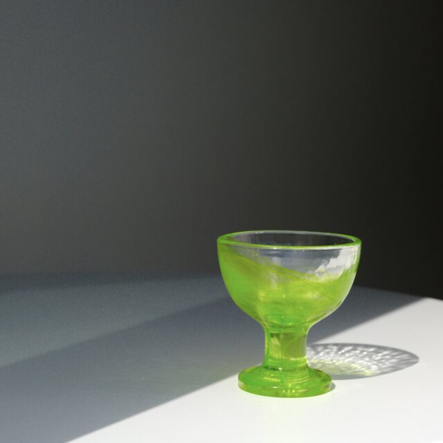 鮮やかなネオングリーンが印象的な、KOSTA BODAのヴィンテージガラスのコンポート皿。デザートを盛り付ける器として、またはアクセサリーや小物をディスプレイするトレイとしてもおすすめです。分厚く重いガラスで作られている為オブジェとしても安定感があります。