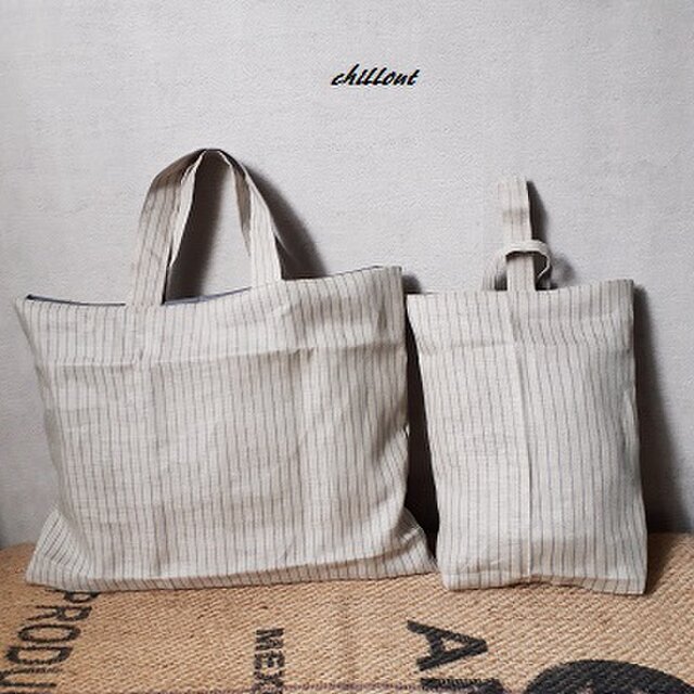 ストライプリネンの入園バッグ2点セットが出来上がりました!