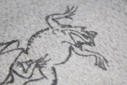 日本最古の漫画とも称される「鳥獣戯画」を捺染で施した半幅帯です。