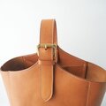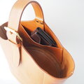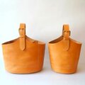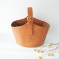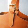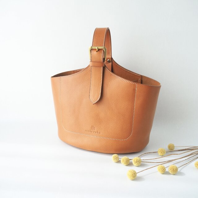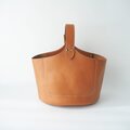 イタリアンレザーのボリュームのあるヌメ革でできたワンハンドルのバケツ型のトートです。