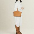 ワンハンドルは手で下げる時に2本手のバッグを持つ時と手の向きが変わって少し違和感があるかもしれませんが、腕にかけて使っていただくとバッグの向きがちょうどよく、とても使いやすいです。