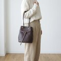 シンプルな装いを、さりげなく格上げしてくれる大人のためのきんちゃくバッグです。