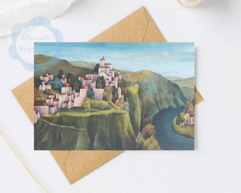キラキラや甘々ではないクリスマスカードを探していました。 これがなかなか見つからないし、見つかってもどこか違う……と探し回っていたときに出会うことができました。 モニターで見ていたときより色彩がクリアで全体に冬の空気の透明感のようなものが感じられます。 少し寂しくも思えますが、その地域に暮らす人々が集う教会の存在に温かみが想像できます。 近代の北欧絵画のようです。 ありがとうございました。