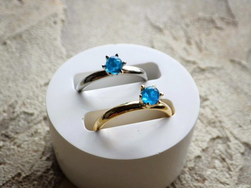 天然石の指輪 ■ ラウンドカボション 4mm ■ ネオンブルーアパタイト