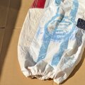 古い粉袋から、パンツを作りました。