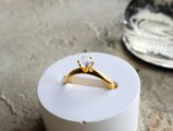直径4mmという小さなドームのような、ぷっくりとしたラウンドカボションの天然石を6本爪の指輪に仕上げました。