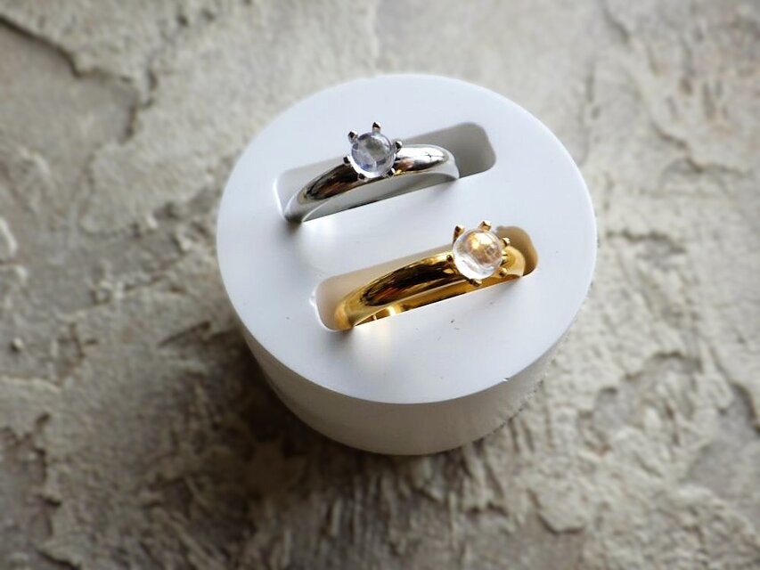 指輪の金属色はゴールド色、シルバー色のどちらかをお選びください。ご注文いただいてから制作してお届けいたします。また、小さな箱に入れてお届けします。ギフトのラッピングの際は【追加オプション】指輪用の箱に入れてご用意します。