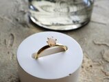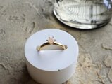 直径4mmという小さなドームのような、ぷっくりとしたラウンドカボションの天然石を6本爪の指輪に仕上げました。