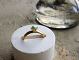 直径4mmという小さなドームのような、ぷっくりとしたラウンドカボションの天然石を6本爪の指輪に仕上げました。