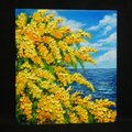 この「ミモザの海」は、お客様の空間に春の訪れと自然の美をもたらし、特別なひとときの演出をしてくれる素敵なアート作品です。