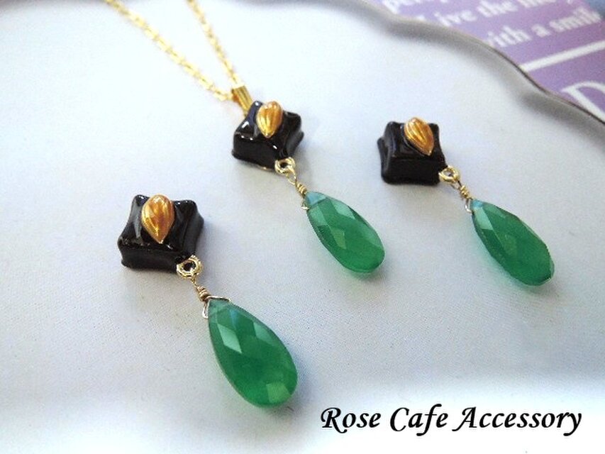 (1425)とっても可愛い~ボンボンショコラ&グリーンオニキス✨ペアシェイプブリオレットカット✨ネックレスチャームORセット販売