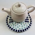 可愛い鍋敷きを有難うございました。配色も可愛く、とても気に入っております。前回の作品同様、大切に使わせて頂きます。また、小さなタイルのお家も仲間が増え、早速に棚に飾りました。有難うございました。