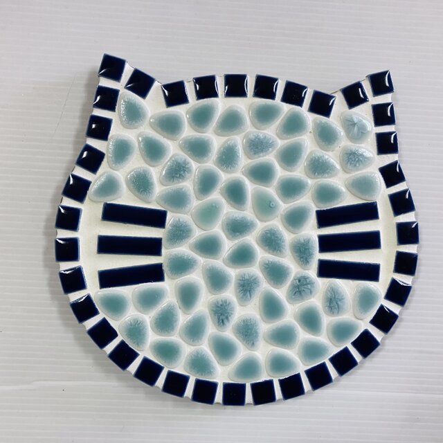 モザイクタイル鍋敷 猫顔〜ネイビー枠&髭