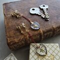 甘くなりすぎないよう、ゴールド金具とヴィンテージパーツでまとめ、どこか懐かしく、少し不思議な雰囲気に。