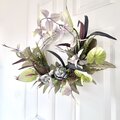 オーダーメイドリース2点退職記念のお花のオーダーメイドに応じて作っていただきました。 落ち着いた雰囲気でとてもお洒落なリースに仕上がり感謝しています。