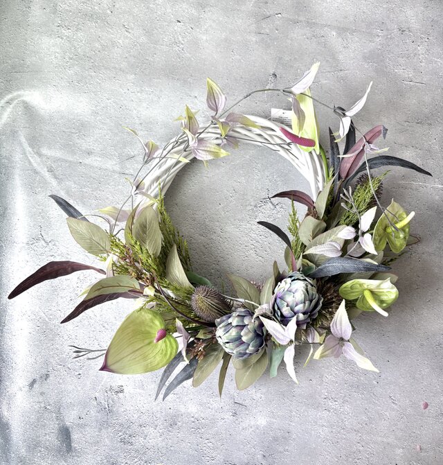 アンスリウムとアーティチョークのリース(直径約40cm) /アーティフィシャルフラワー/新築祝い/開業祝い/開店祝い