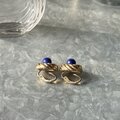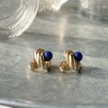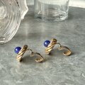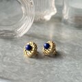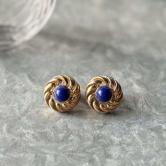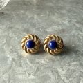 ラピスカラーカボションが印象的なゴールドトーンスワールイヤリング。